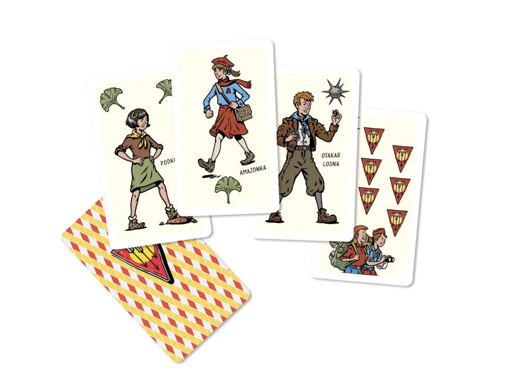 Experience the atmosphere of the mysterious Severton district in a classic card game known to generations. This special edition of the popular game Prší brings the famous "Rychlé šípy" (Rapid Arrows) club—Mirek Dušín, Jarka Metelka, Jindra Hojer, Červenáček, and Rychlonožka—directly to your table. It is a perfect choice for children discovering these heroes for the first time and adults revisiting their childhood memories.