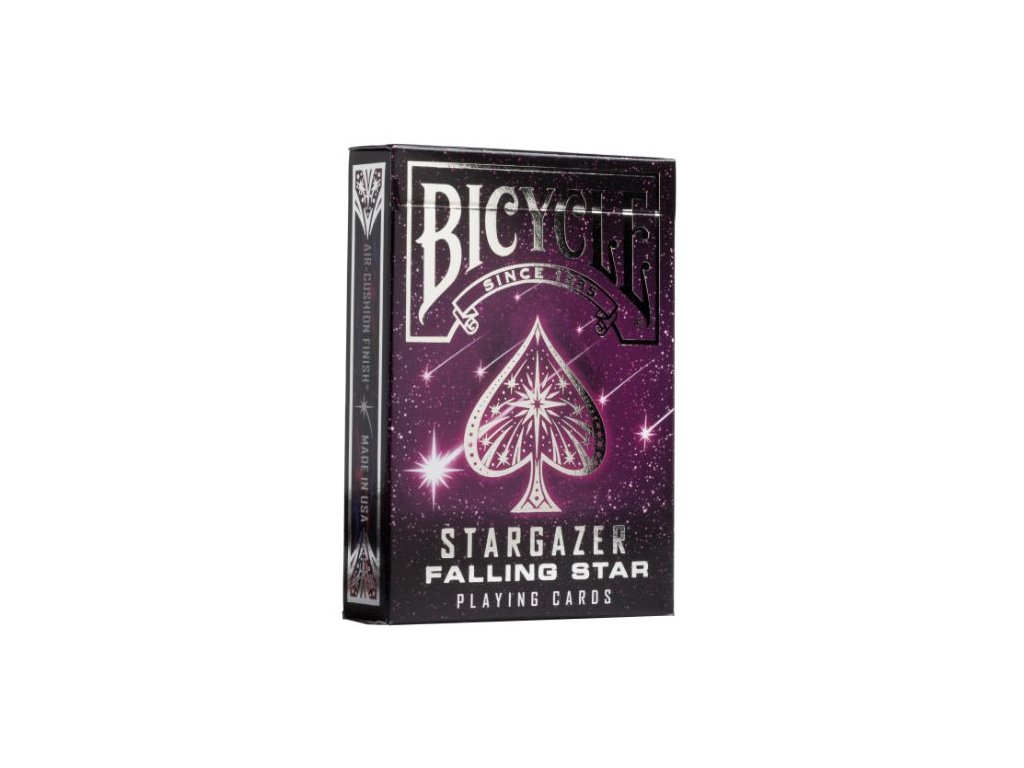 Bring a touch of cosmic magic to your next game with Bicycle Stargazer Falling Star playing cards. Inspired by one of nature's most beautiful spectacles, this deck features deep blacks combined with vibrant purple and silver hues. Each card looks as if it were forged from stardust, making it a must-have for collectors and cardistry fans alike.