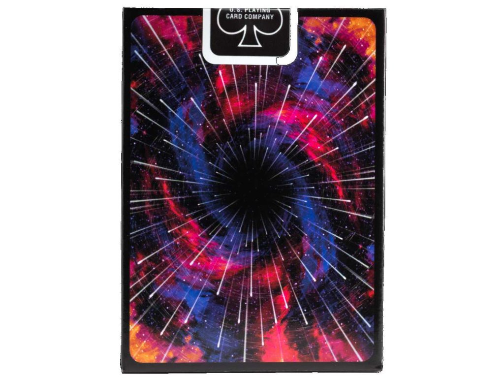 The back design features a hypnotic swirl of colors reminiscent of a star being born or a distant galaxy.