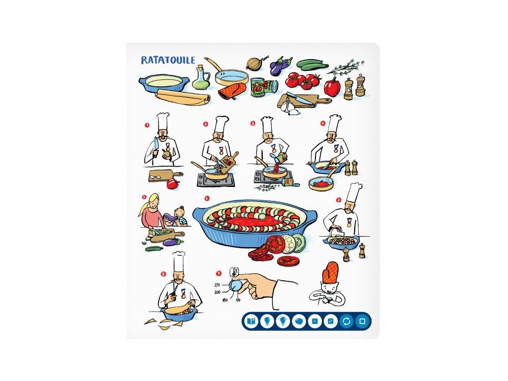 Europe on a Plate is an interactive book from ALBI's Magic Reading series for children aged 6 to 12. It takes young readers on a culinary journey through Europe's most famous kitchens, discovering traditional foods, customs, and cultures. Touch the pages with the magic pen for interactive content.