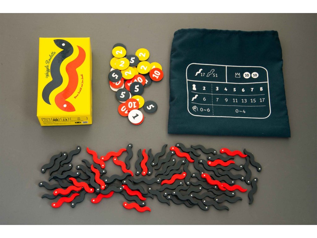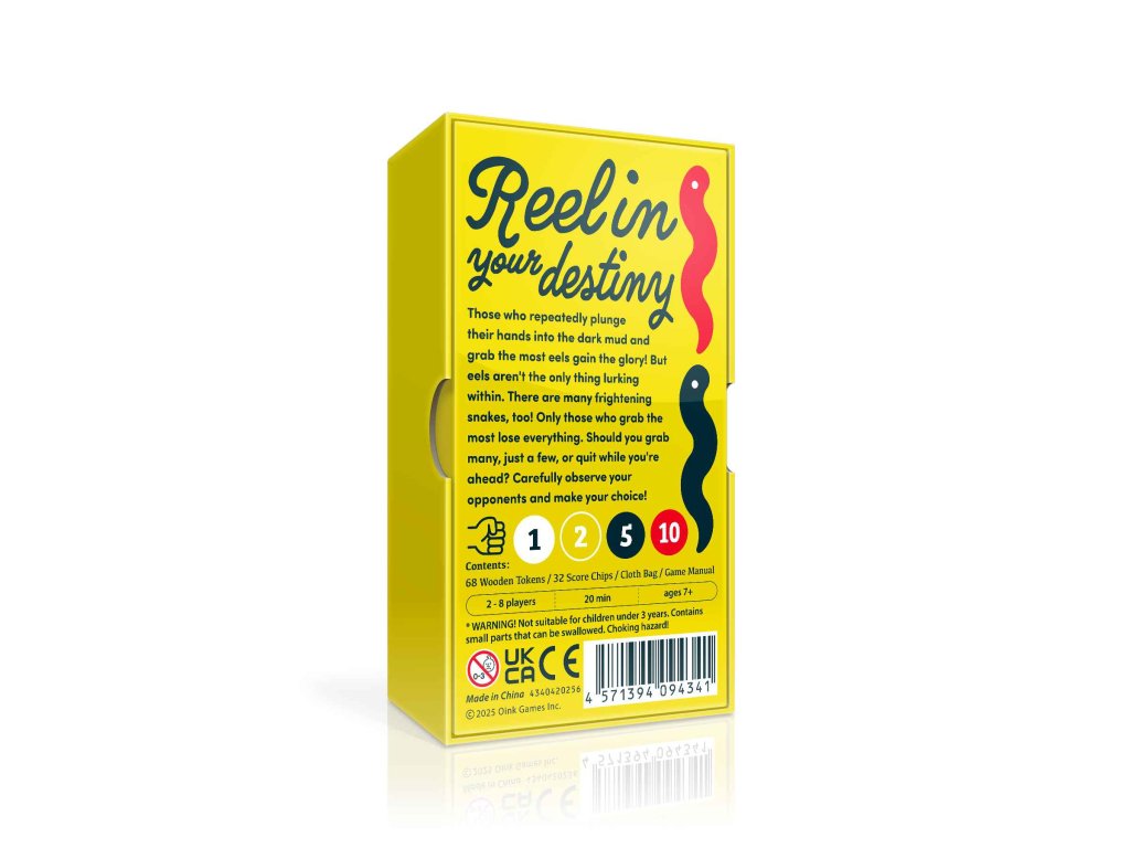 Players take turns reaching into a bag filled with eel and snake-shaped wooden pieces, trying to pull out as many eels as possible. But beware—hidden among the eels are snakes. If the total number of snakes grabbed by all players exceeds the limit, a "snake outbreak" occurs.