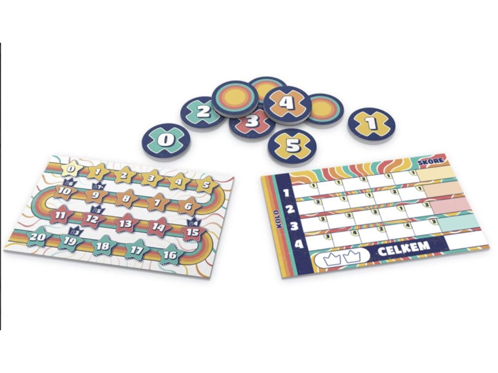 Box Contents: Pad of game sheets, 7 counters, 7 pencils, 7 scoring tokens, 10 "forbidden" tokens, 5 danger cards.