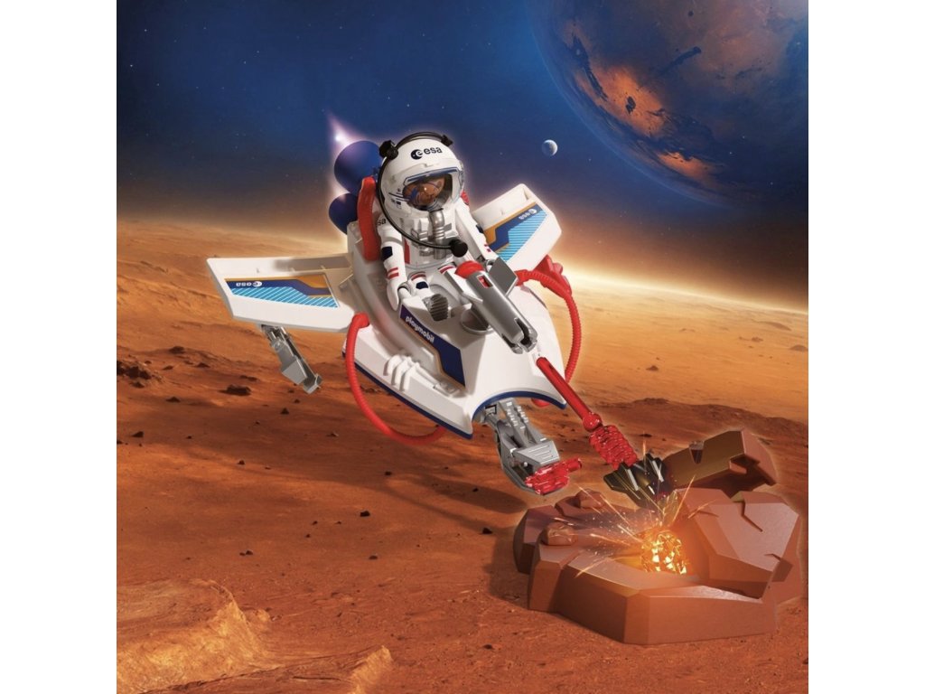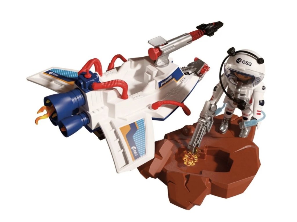 Set Includes: ESA astronaut figure, space glider with gripper arm, breakable rock formation, crystals, projectile, and various mission accessories.