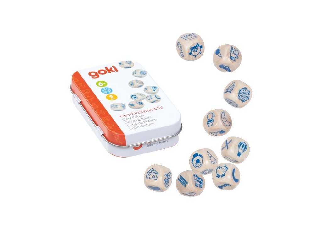 This is how a story could begin, inspired by our story cubes. The set of nine wooden cubes features different motifs that can be arranged in any order.