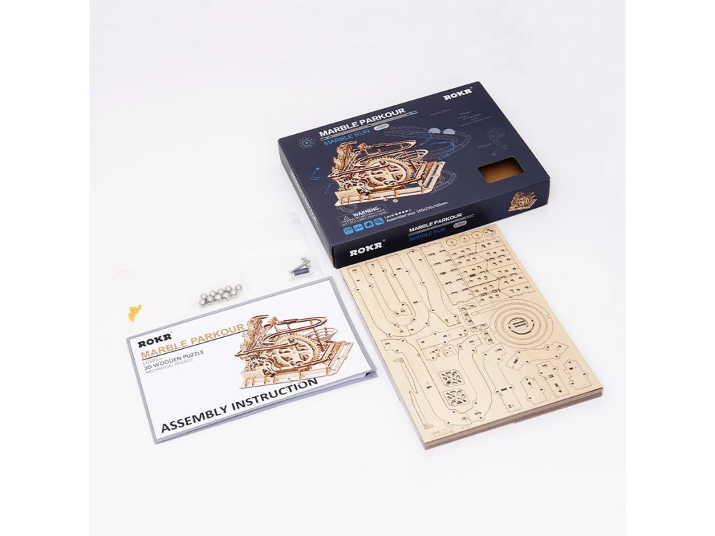 - FUNNEL RAIL: LG501 Marble Parkour is a handcrafted marble run 3D wooden puzzle set with a big funnel rail. Build it with 233 pcs building pieces and 10 marbles.
