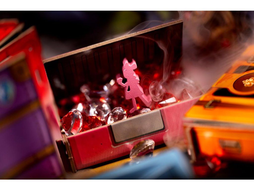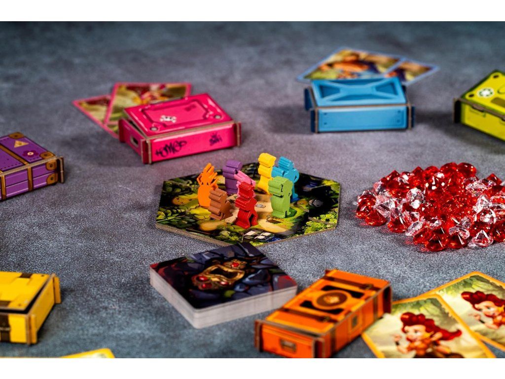 Each round, players flip over a card revealing either a treasure or a trap. After seeing what lies ahead, everyone secretly chooses whether to keep going or head back to camp. Going deeper might lead to more diamonds – or disaster. If a trap appears for the second time, everyone still inside the cave loses all the treasures they’ve collected that round.