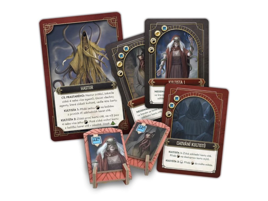 Sólo režim: Hra obsahuje plnohodnotnou variantu pro jednoho hráče s kartami chování kultistů a Prastarých.