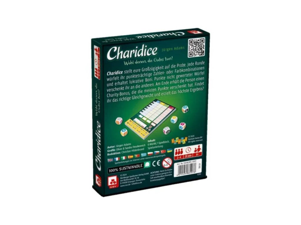Charidice je rychlá a svižná kostková hra, ve které se úspěch odvíjí od rozhodnutí, zda si body ponechat, nebo je velkoryse darovat.