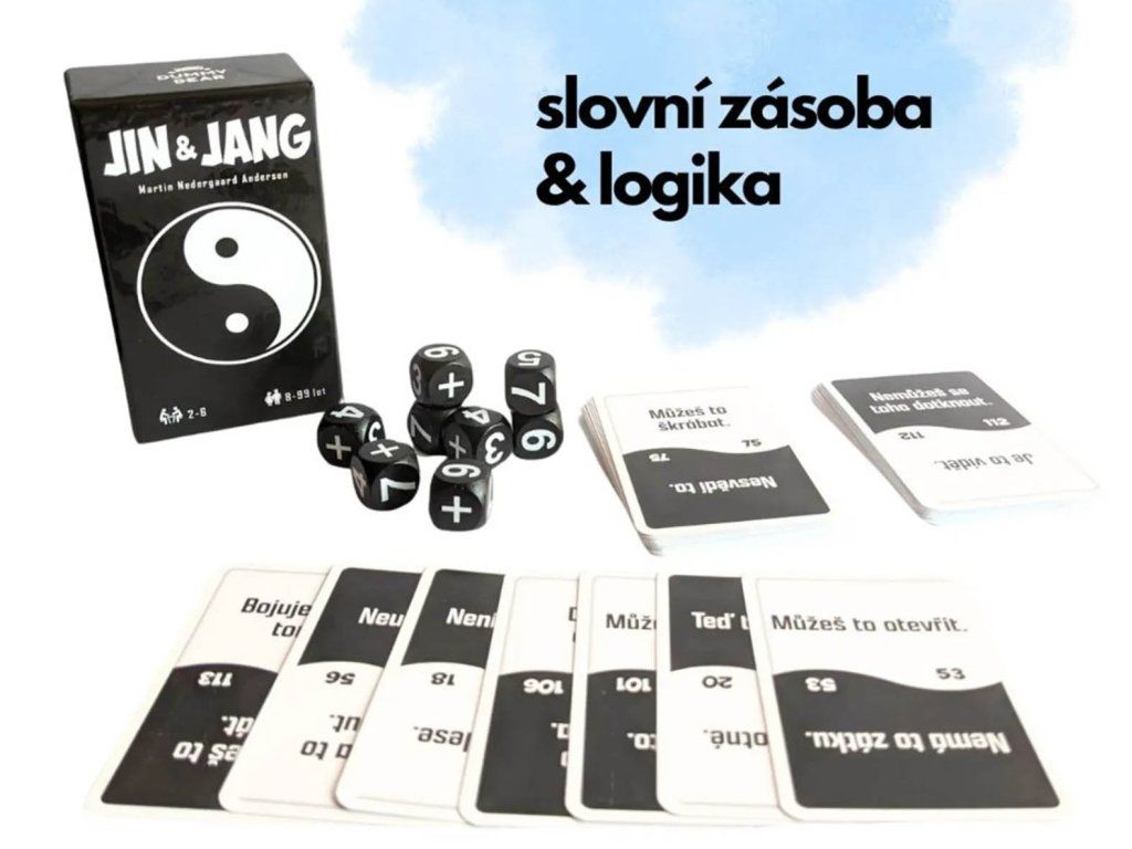 Procvičte si mozek a užijte si chytrou zábavu s celou rodinou. JIN & JANG je inspirativní trénink logiky, dedukce a představivosti sbalený do malé krabičky, která se vejde do kapsy i do kabelky. Zapomeňte na složitá pravidla – tady jde o vaši slovní zásobu a schopnost vidět souvislosti tam, kde ostatní vidí protiklady.