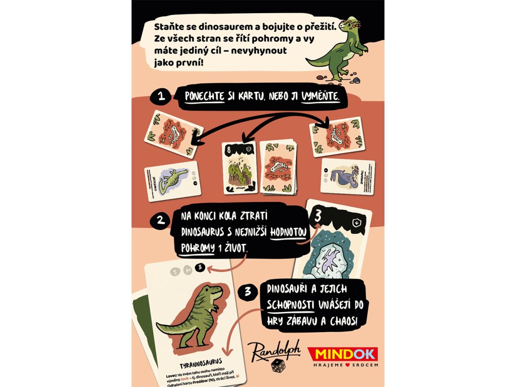 Strategie a škodolibost: Vyměňujte karty pohrom, ve správnou chvíli využijte schopnost svého dinosaura a snažte se, ať životy dříve dojdou soupeřům!