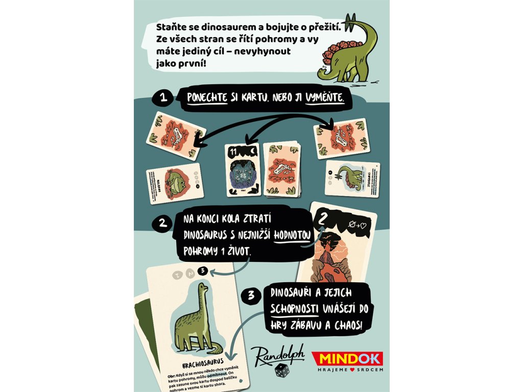 Strategie a škodolibost: Vyměňujte karty pohrom, ve správnou chvíli využijte schopnost svého dinosaura a snažte se, ať životy dříve dojdou soupeřům!