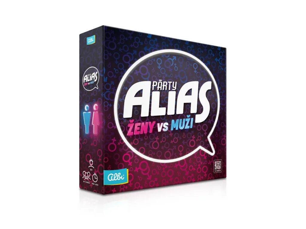 Hra Párty Alias Ženy versus muži obsahuje: herní plán, 400 karet obsahujících 2 400 slov, přesýpací hodiny, 2 figurky a pravidla.