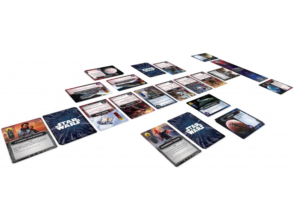 STAR WARS:THE DECKBUILDING GAME je kompetitivní hrou pro dva hráče, která na váš stůl přenese válku mezi Galaktickým impériem a Povstaleckou aliancí probíhající napříč celou galaxií. Vy a váš soupeř si vyberete mezi Impériem a povstalci. V průběhu hry budete svůj startovní balíček posilovat kupováním karet, které vám zajistí větší palebnou sílu a přidají vám zdroje, abyste mohli napadnout a zcela zničit nepřátelskou základnu. První hráč, který soupeři zničí tři základny, vyhrává hru!