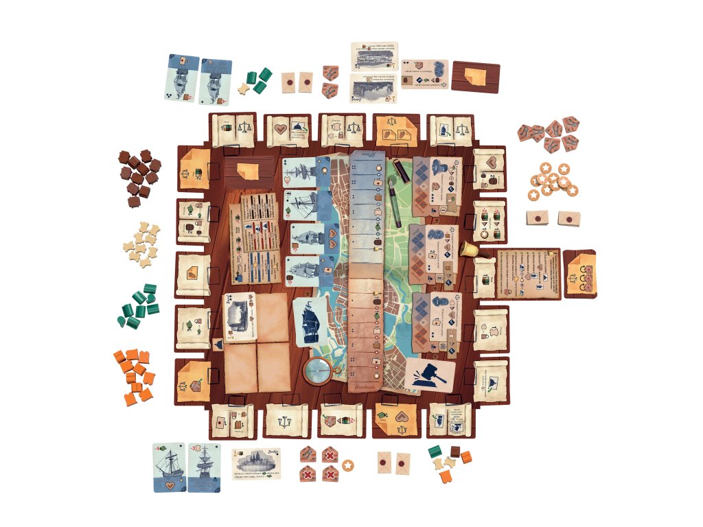 Nádherné zpracování: Detailní grafika a dřevěné komponenty vás přenesou do atmosféry severoněmecké hanzy.