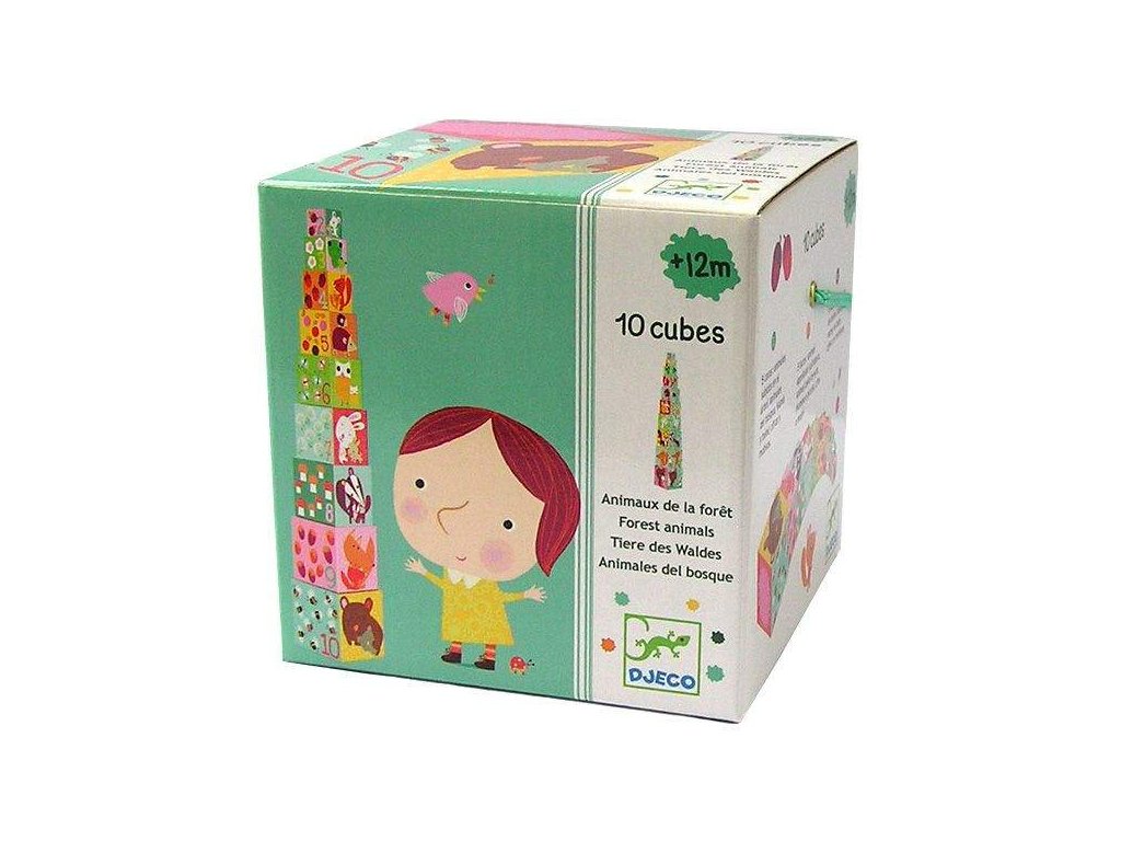 Balení obsahuje 10 kostek s obrázky lesních zvířátek, ze kterých děti postaví vysokáááánskou věž.