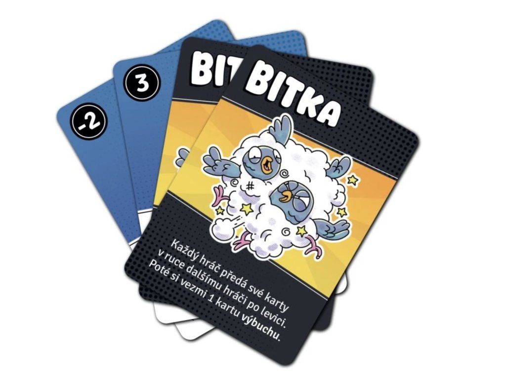 Karta Bitka donutí všechny hráče poslat své karty sousedovi. Chilli odpraví holuba, pokud je na něj zahrána další modrá karta krmení, a Limča má sice hodnotu -2, ale váš holub vybouchne až při 5 různých barvách krmení.