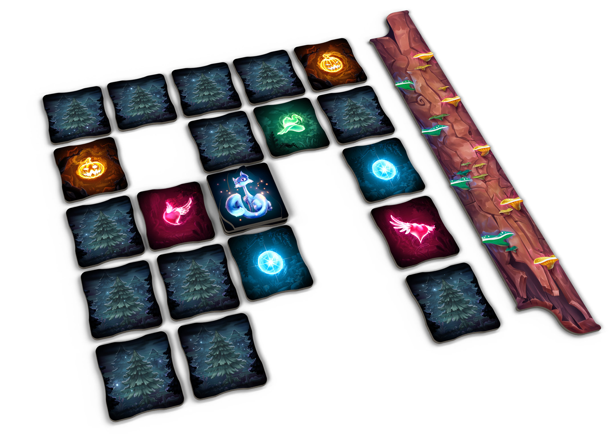 Klíčovým prvkem je vaše Kočka, která na začátku hry sedí na startovním dílku stromu ve vašem lese. Když je Kočka „připravená“, můžete ji v tahu schovat, a tím provést jednu ze dvou silných akcí Kočky: