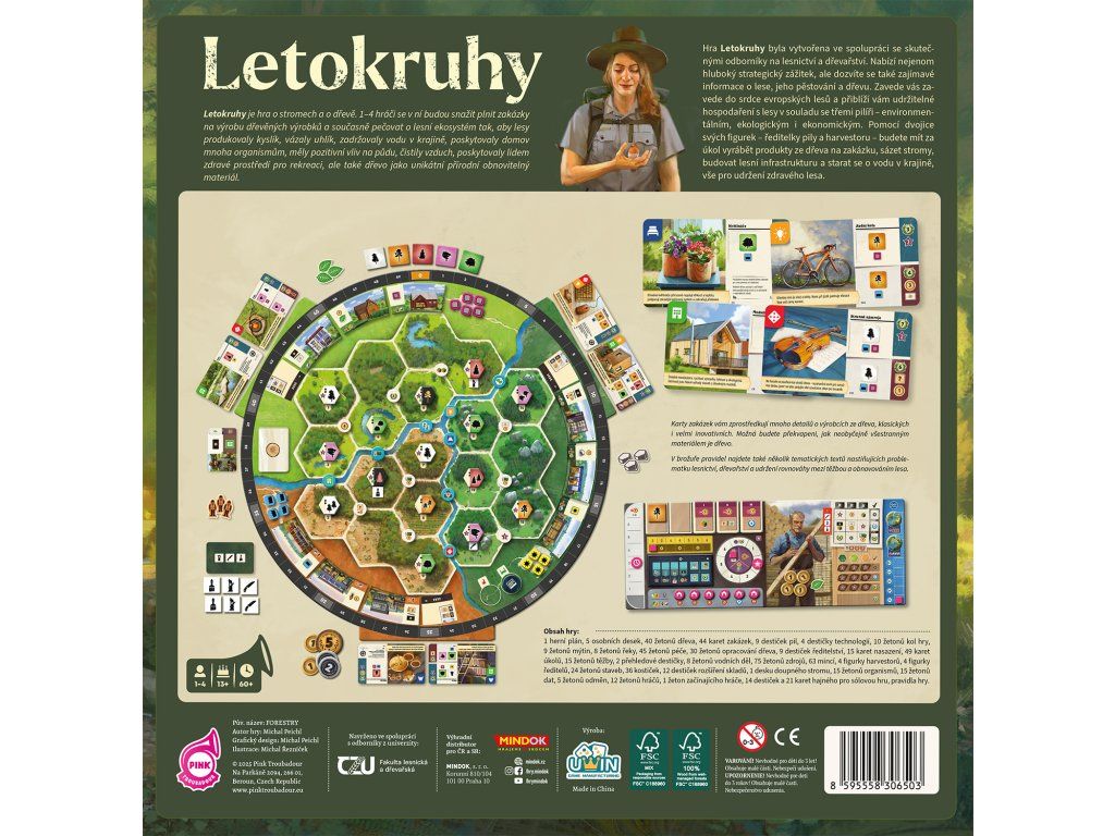Desková hra Letokruhy vás zavede do světa moderního lesnictví, kde se stanete hospodáři v evropských lesích. Vaším cílem nebude pouze těžit dřevo, ale především udržitelně hospodařit tak, aby les prosperoval i pro budoucí generace. Hra unikátním způsobem propojuje zábavu s odbornými poznatky – pravidla jsou obohacena o texty expertů z Fakulty lesnické a dřevařské ČZU v Praze, které vám přiblíží ekologický význam stromů i moderní zpracování dřeva.