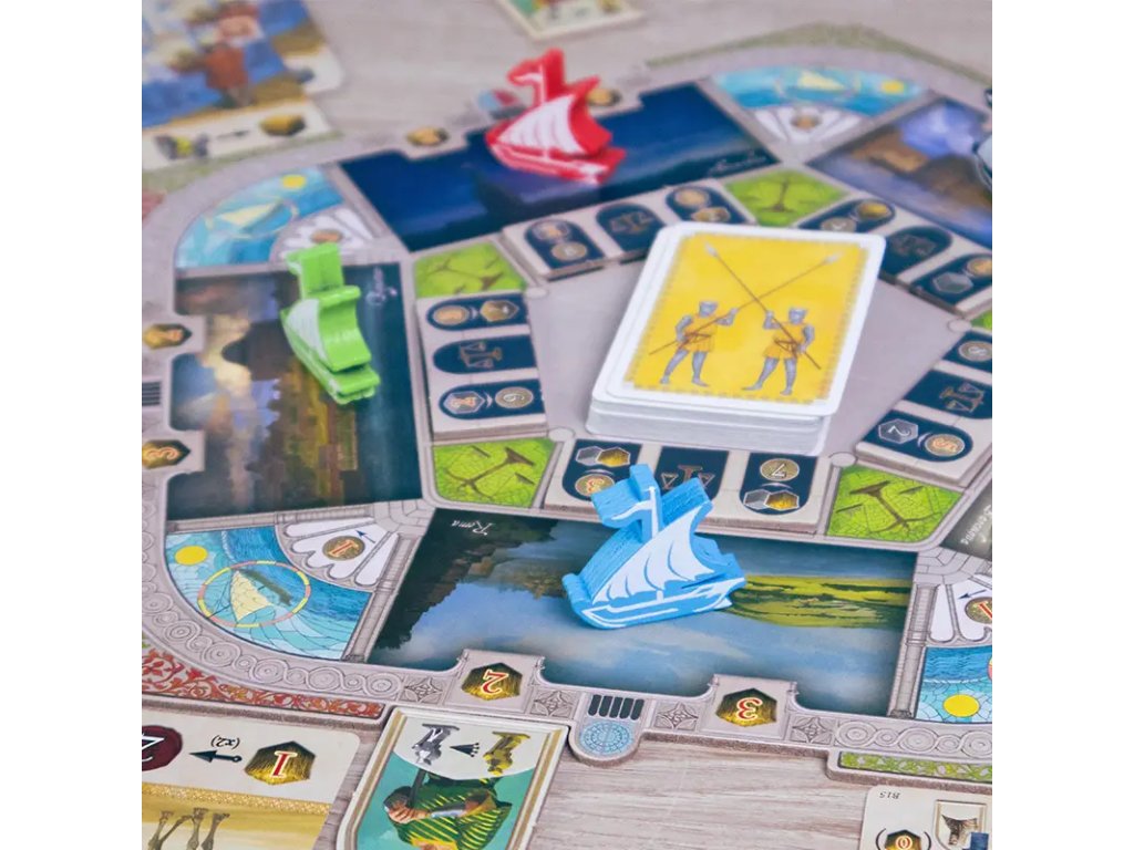 Akční fáze: Se svou lodí proplouváte mapou a vykládáte akční karty. Každou kartu můžete využít dvěma způsoby: buď pro její unikátní efekt, nebo k aktivaci sousedních hlavních akcí na vaší desce hráče.